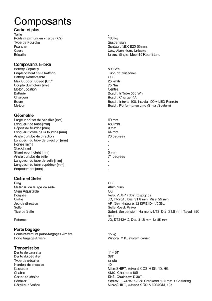 • Ventes de vélos